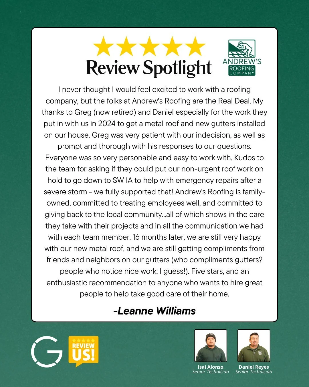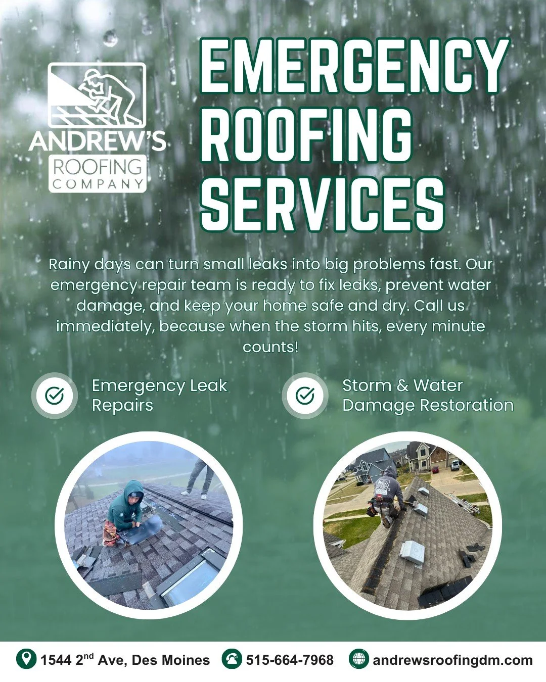 At Andrew’s Roofing Company, we don’t just install roofs; we help protect homes throughout the Des Moines Metro area by properly diverting water. From roofing and gutters to siding and windows, every part of your home works together as a complete water defense system to keep your home dry and secure.